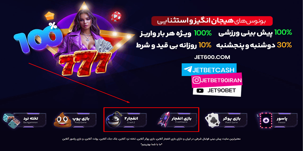 انفجار جت بت90 یکی از محبوب ترین نسخه های بازی انفجار در ایران است که با طراحی مدرن و ضرایب به روز، تجربه ای هیجان انگیز برای کاربران فراهم می کند. برای شروع، ابتدا باید در سایت یا اپلیکیشن جت بت ثبت نام کنید و حساب خود را شارژ کنید. پس از ورود، دو نسخه از بازی در دسترس است: نسخه کلاسیک و نسخه 2، که هر کدام ویژگی ها و سبک خاص خود را دارند.