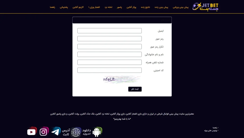 آموزش ثبت نام در سایت جت بت